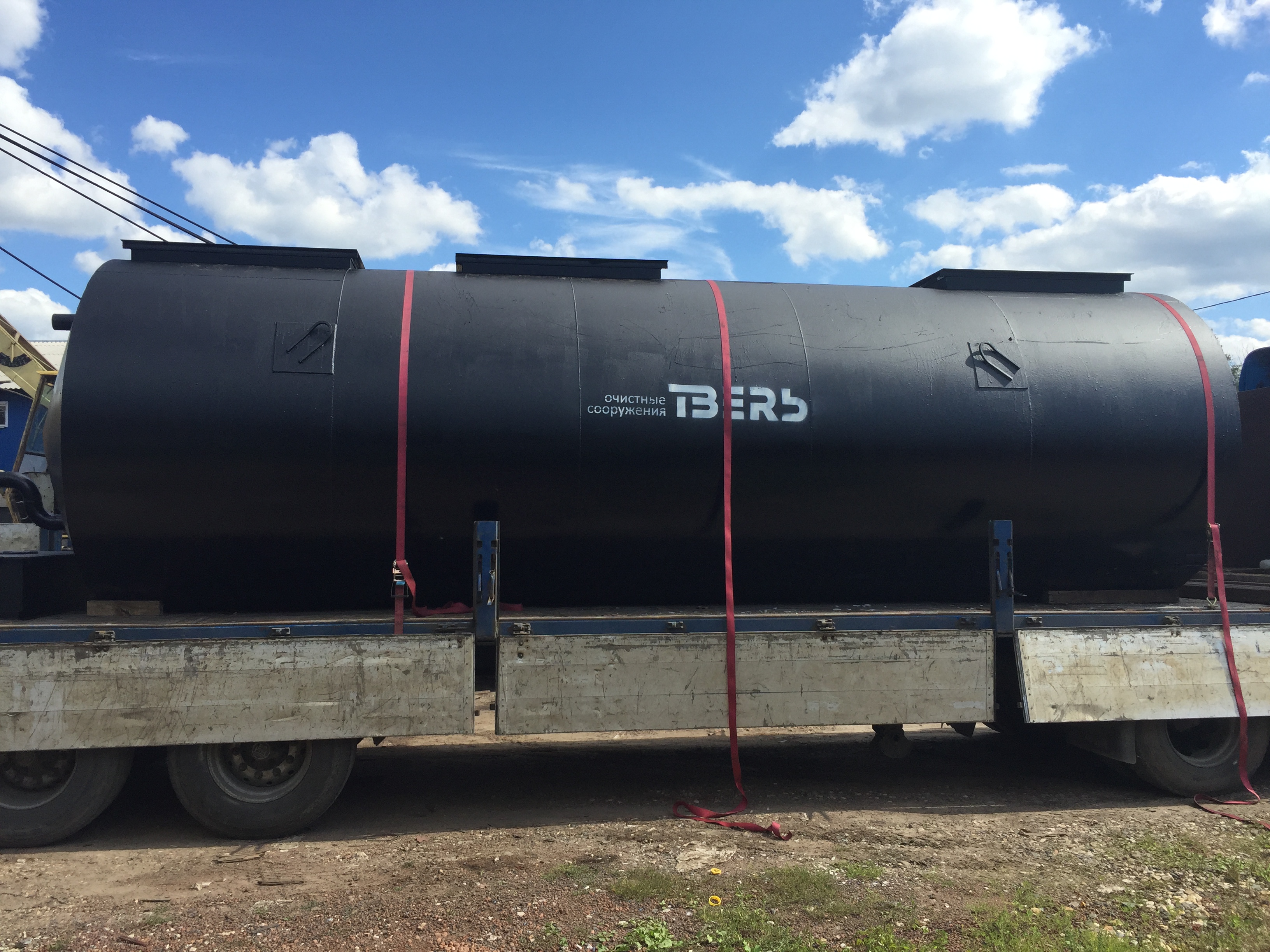 Габариты очистного сооружения: 3 емкости длиной 9800 / диаметром 2400 / весом 17700 кг.
